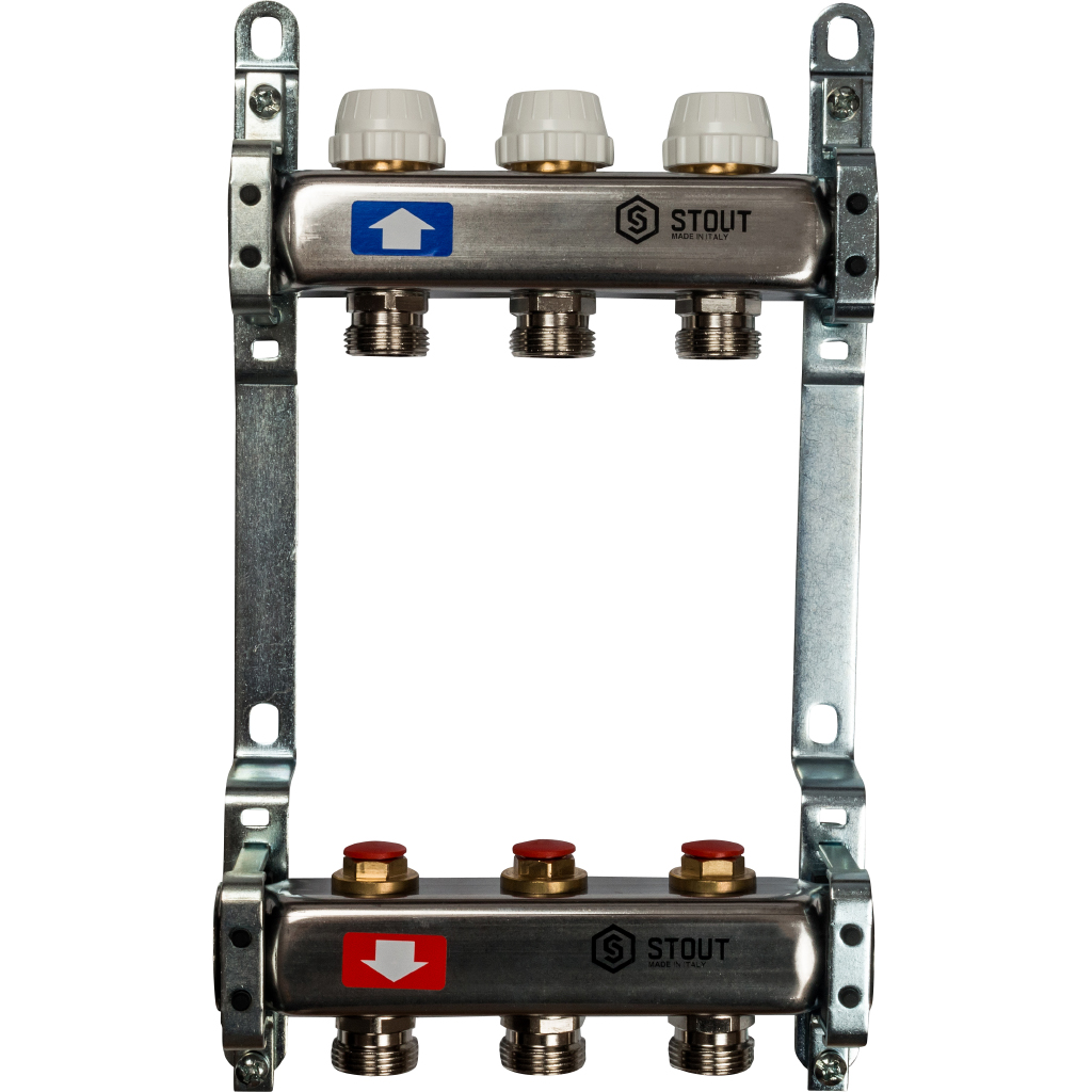 Коллекторная группа для отопления 3 выхода 1*3/4 без расходомеров нержавейка STOUT