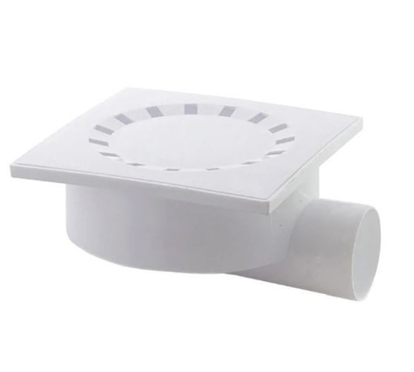 Трап горизонтальный 50 мм с пластиковой решеткой 150х150 мм Политэк